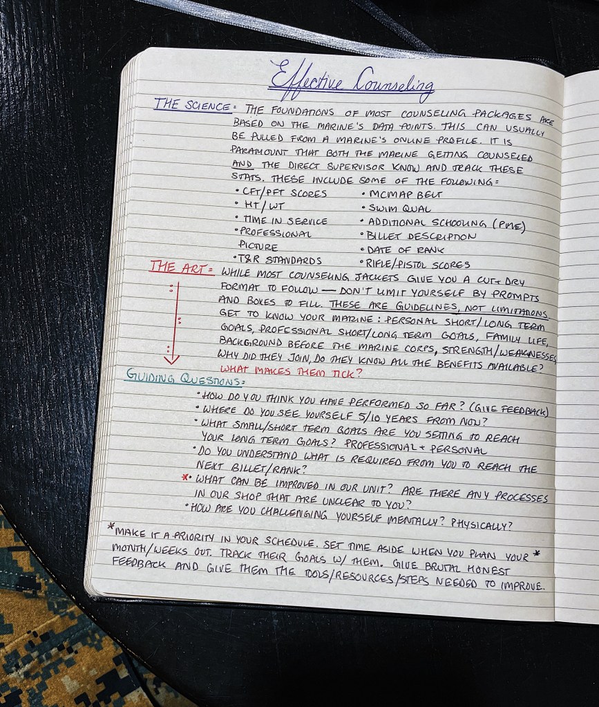 Lastly, make sure to build counseling time in your weekly/monthly TEEP. If you don’t make it a priority you will lose sight of your Marines. A simple problem you could have helped them with at the beginning might turn into a real issue further down the line. Don’t let your Marines fail due to your lack of support.